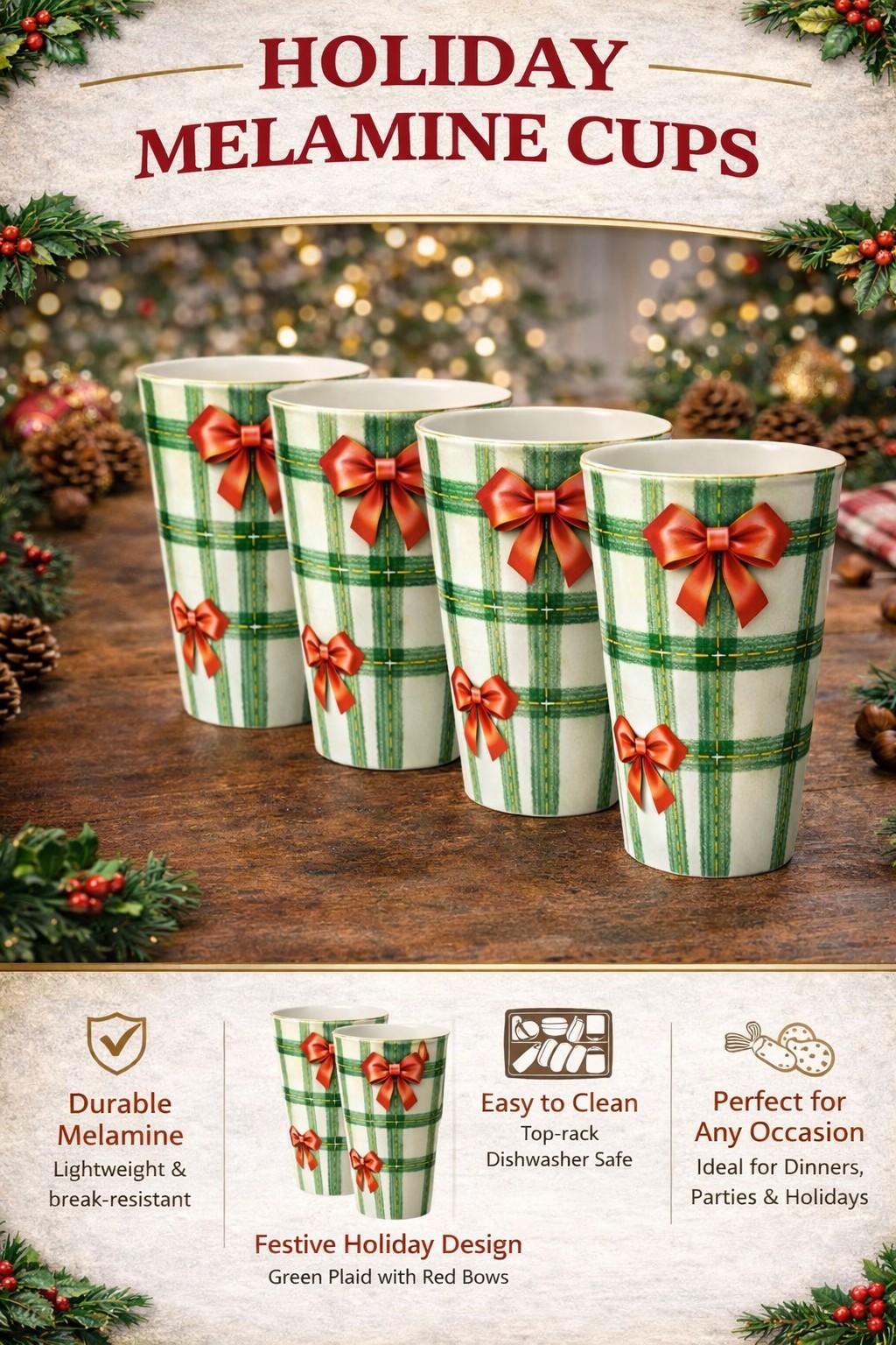 Christmas Plaid Melamine Tumbler Cup for Retail Programs