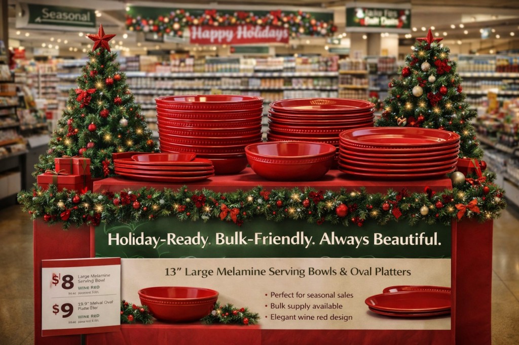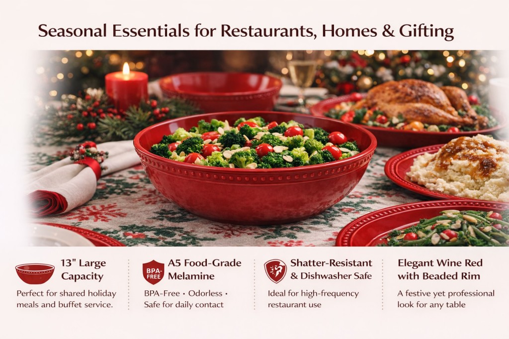 Christmas Red Commercial Serving Bowl | 13 Inch Melamine Bowl