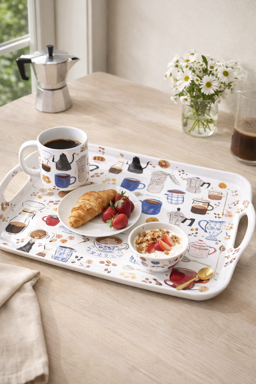 Charming coffee illustrations create a warm, inviting look, perfect for coffee shops, homes, and hospitality settings.