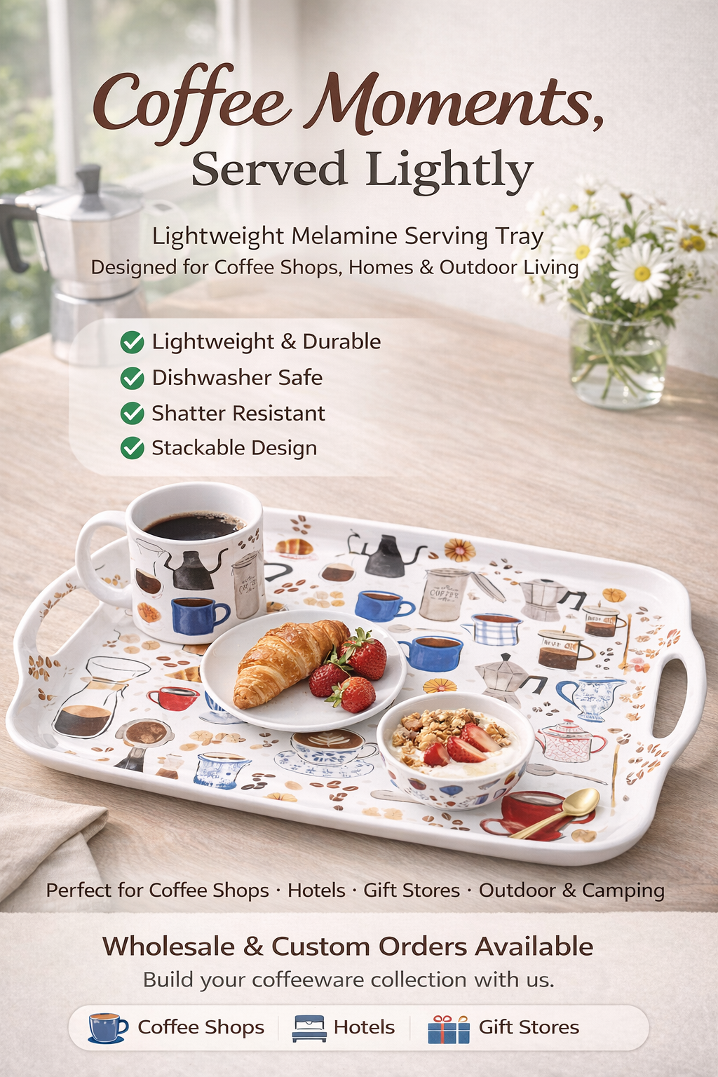 Suitable for coffee shops, hotels, gift stores, outdoor dining, and camping use.