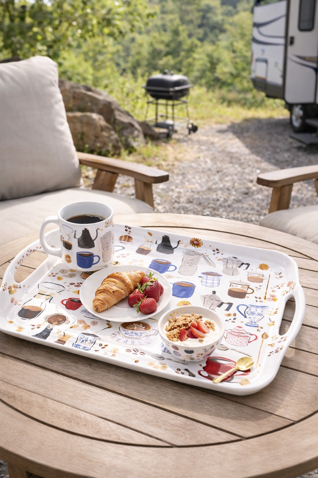Designed with built-in handles for easy carrying, ideal for serving drinks, snacks, and light meals.