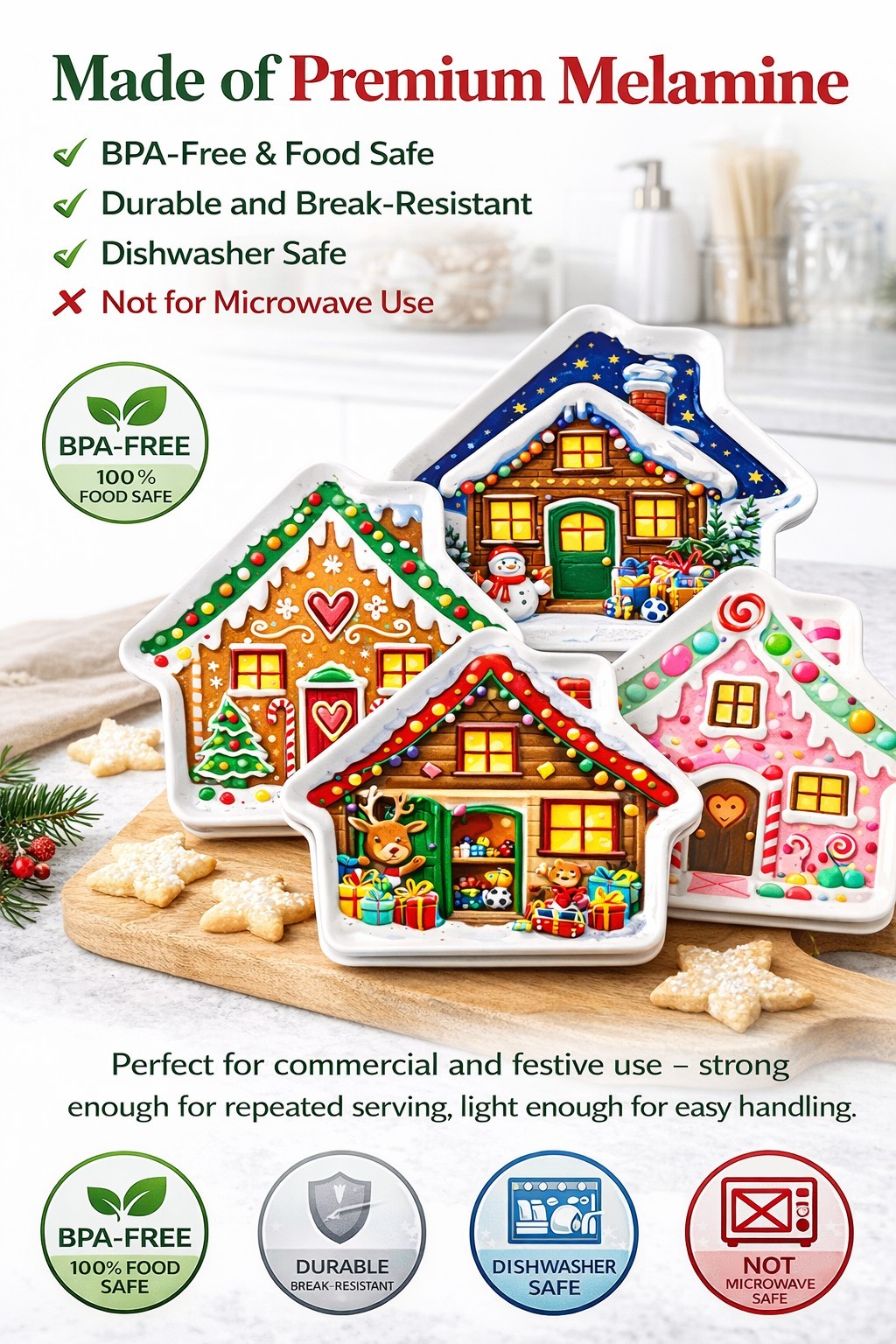 Gingerbread House Shaped Melamine Snack Plate Wholesale