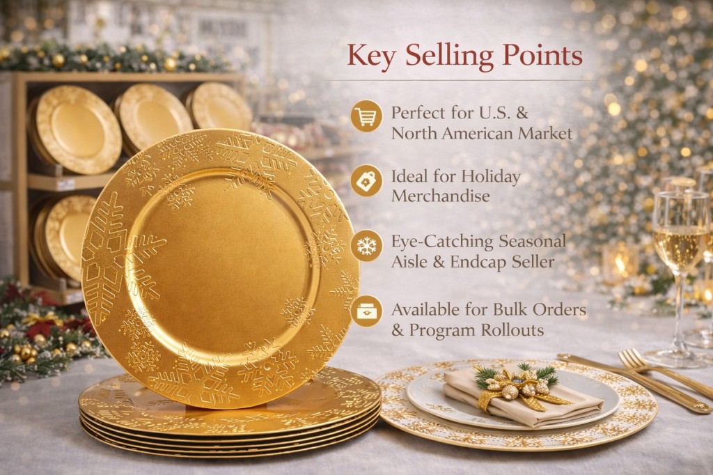 Gold Snowflake Christmas Charger Plate Wholesale Table Decor