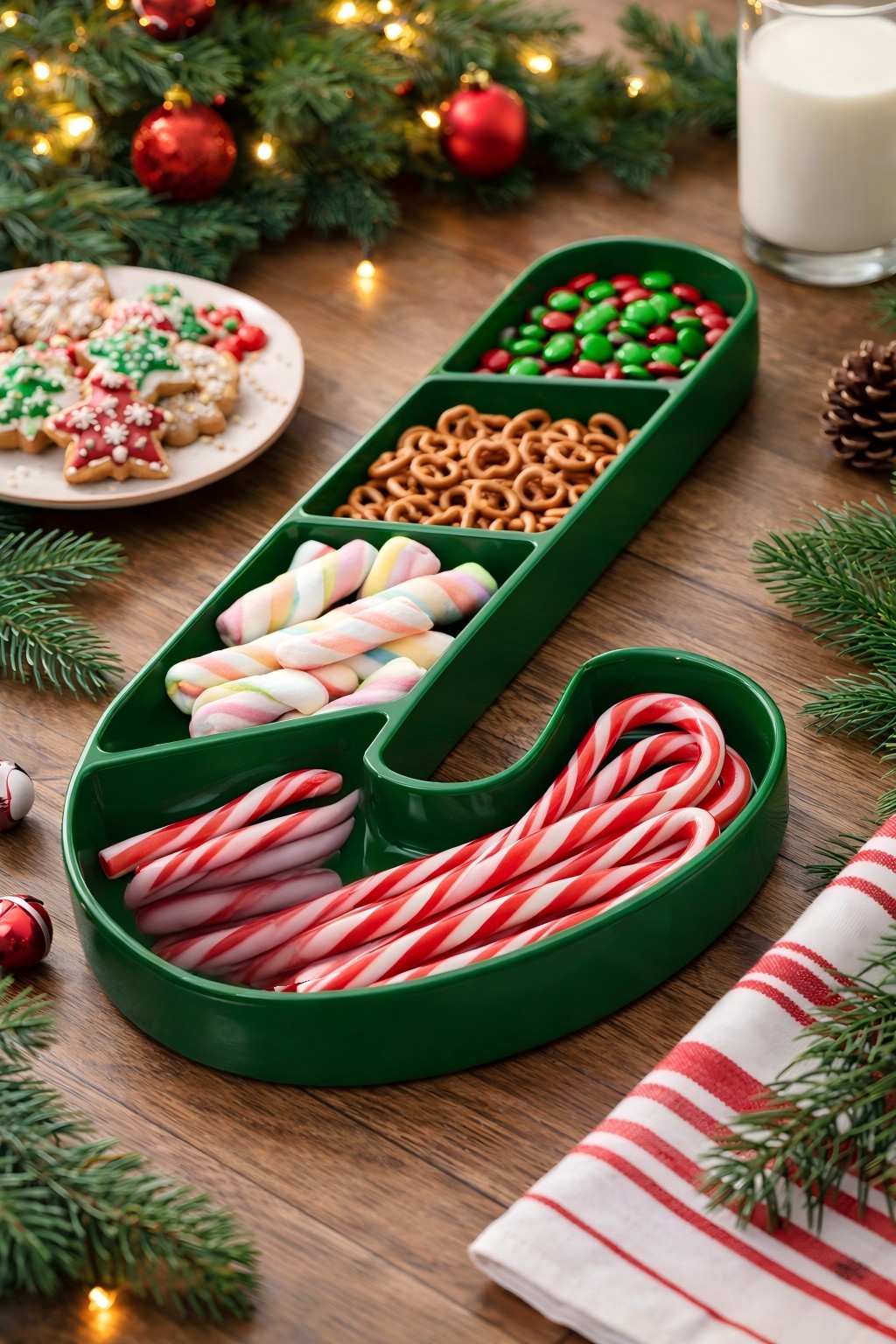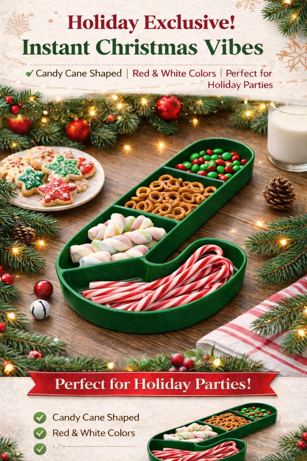 Green Candy Cane Divided Melamine Serving Tray Wholesale