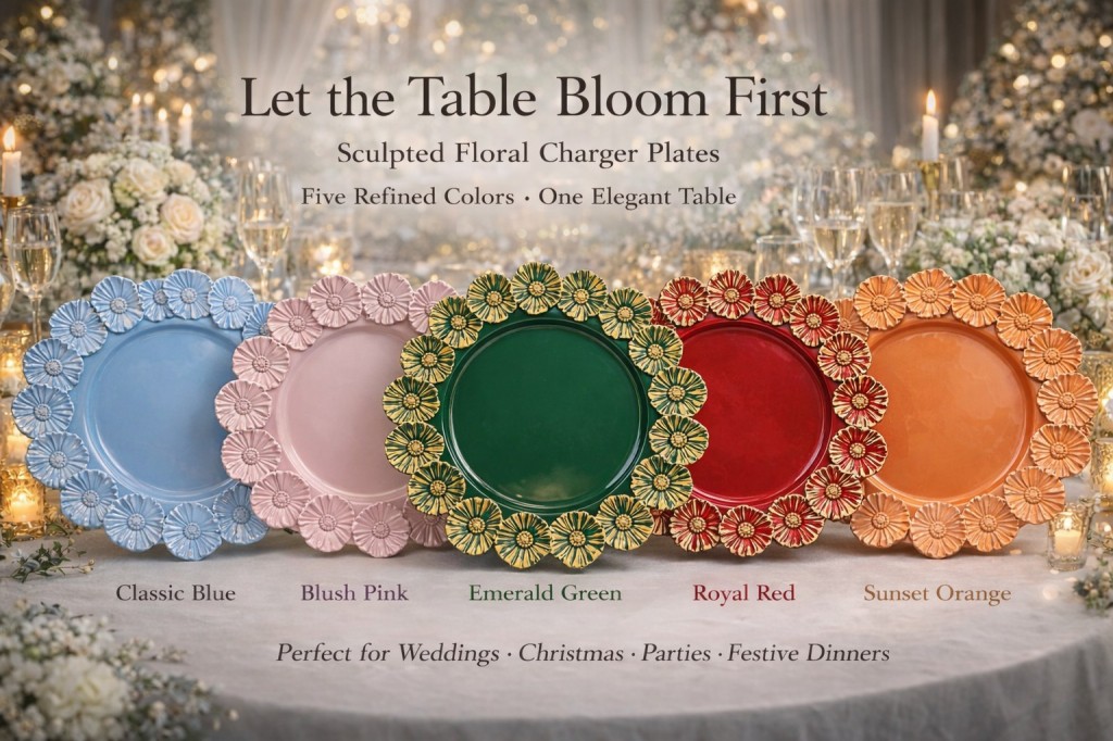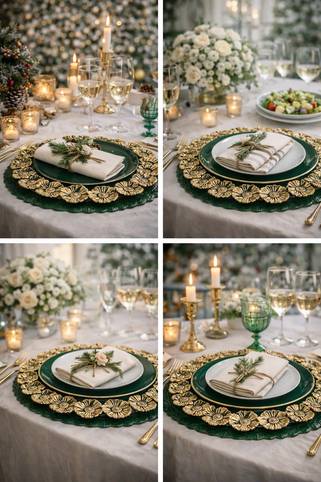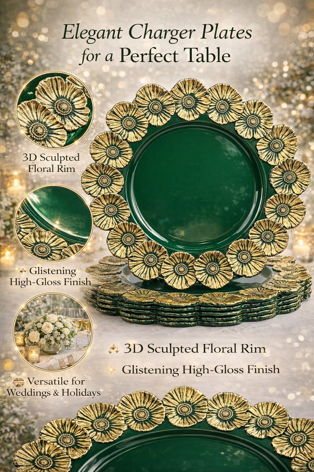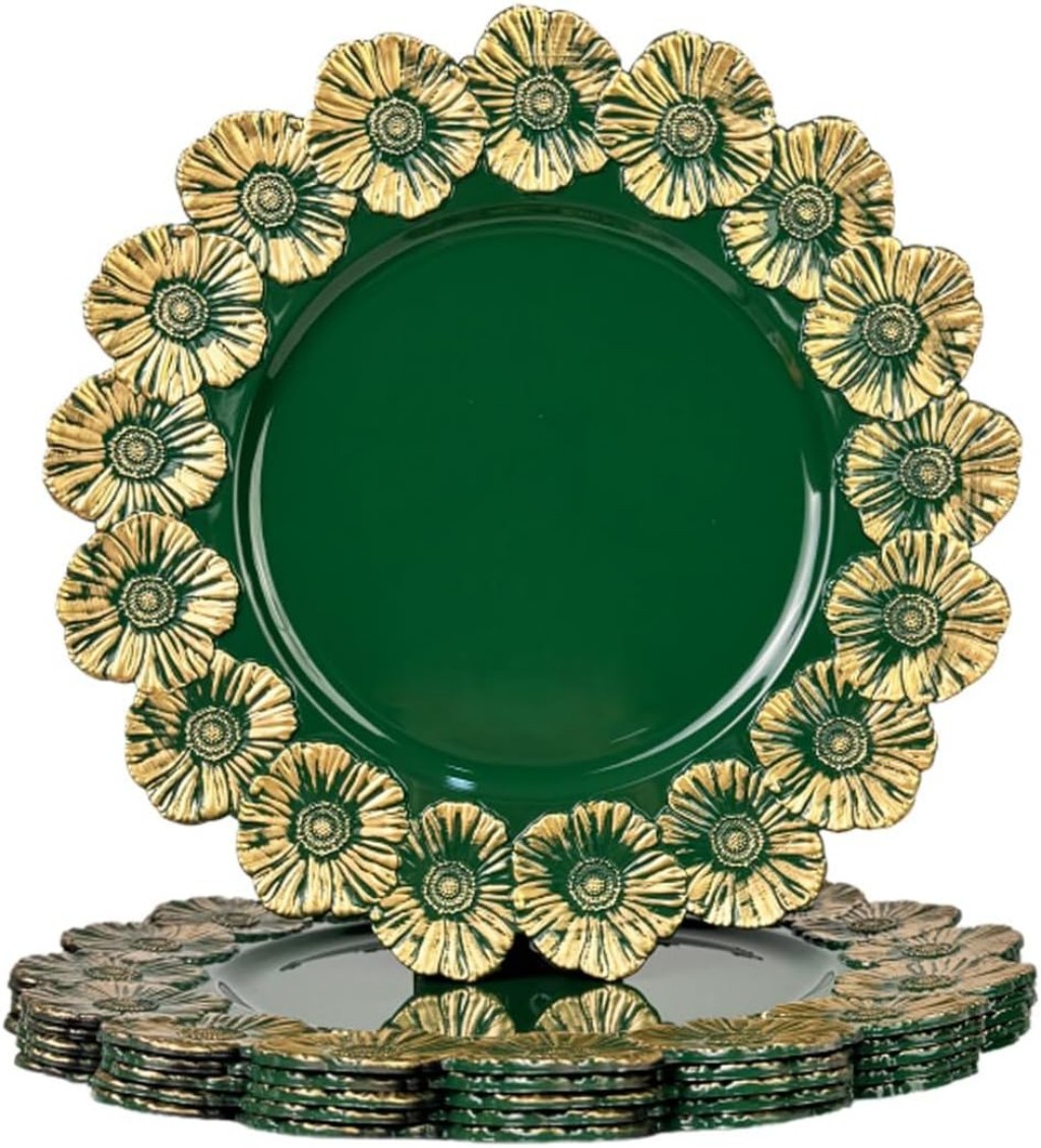 Green Floral Charger Plate Luxury Christmas Table Decor