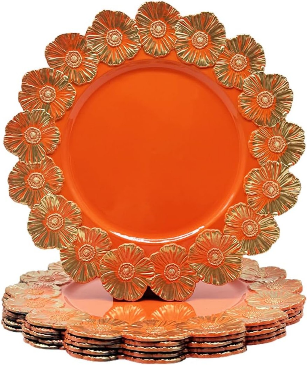 Orange Floral Charger Plate Luxury Wedding & Event Decor