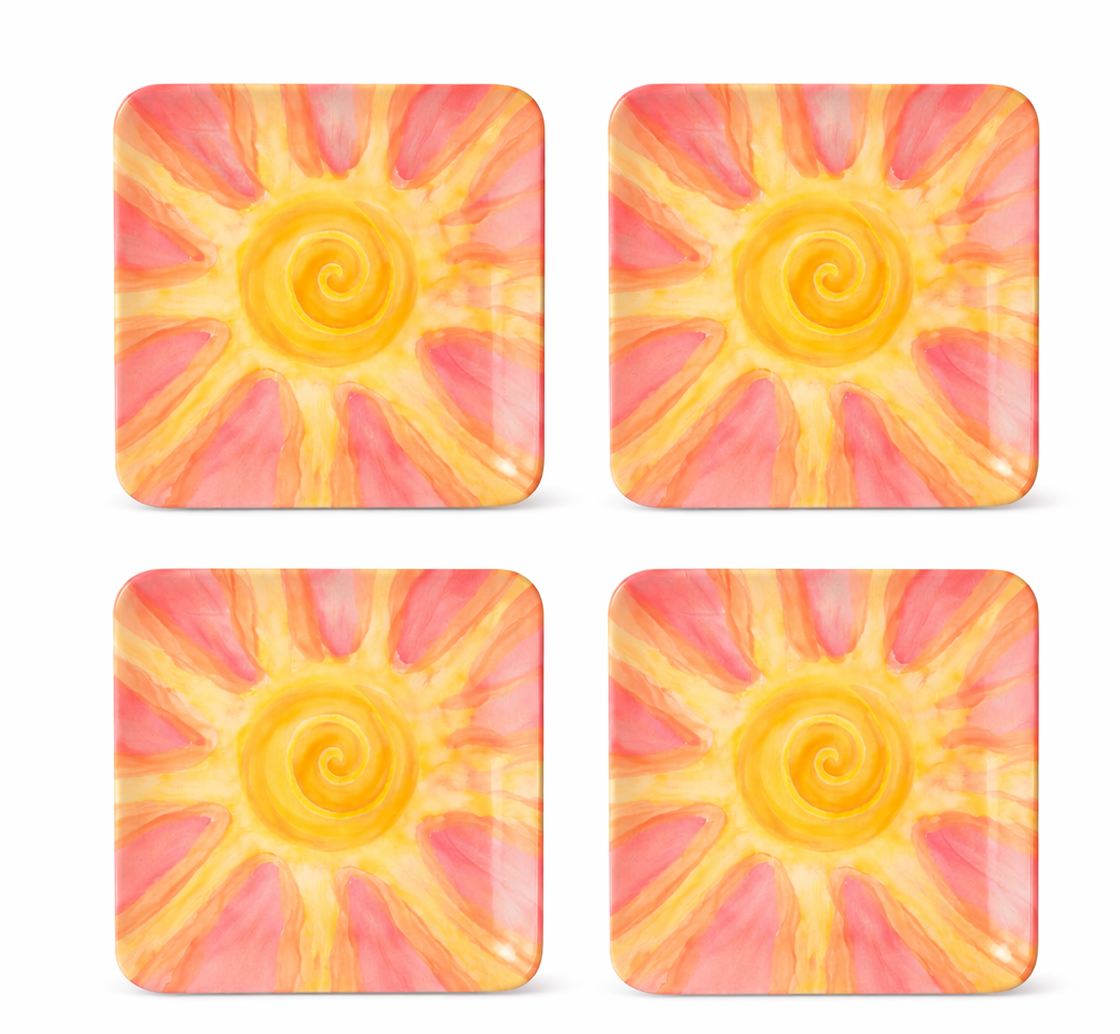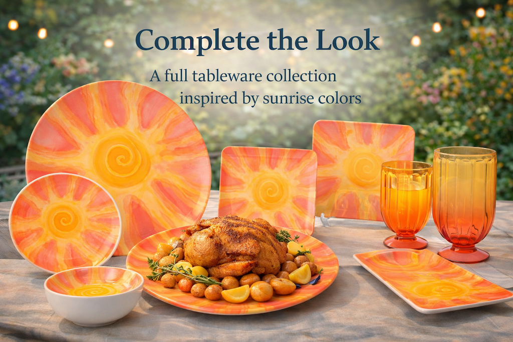 Hand-painted–style swirl motif inspired by early morning light, bringing color and warmth to small bites.