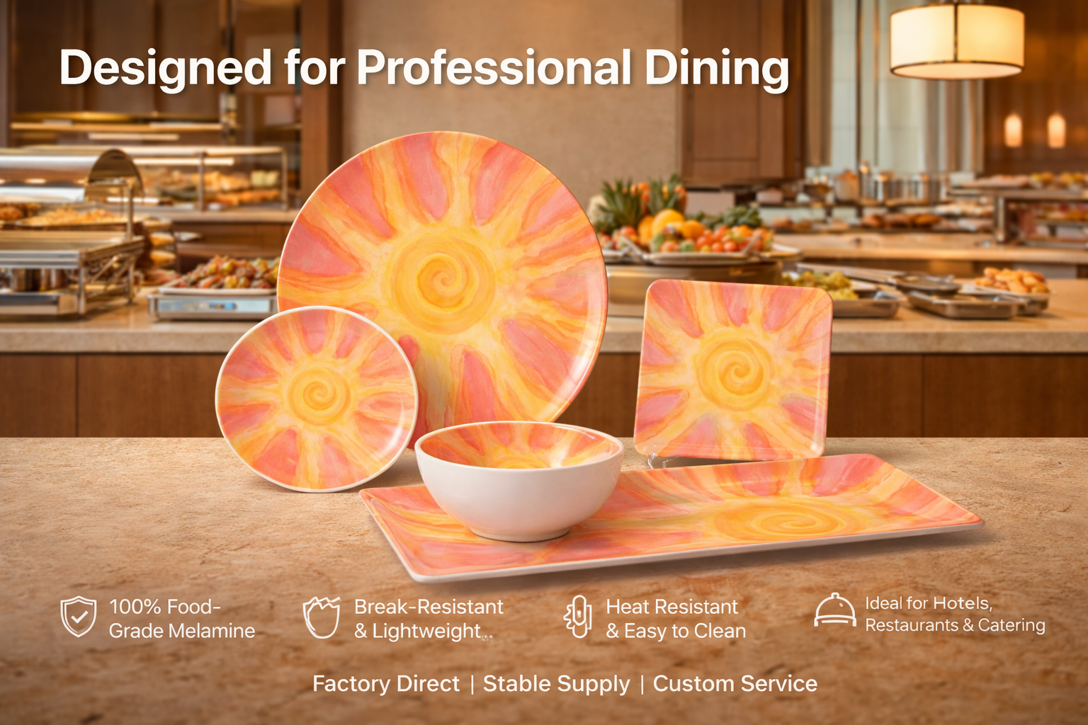 Crafted from durable melamine, suitable for everyday dining and casual entertaining.