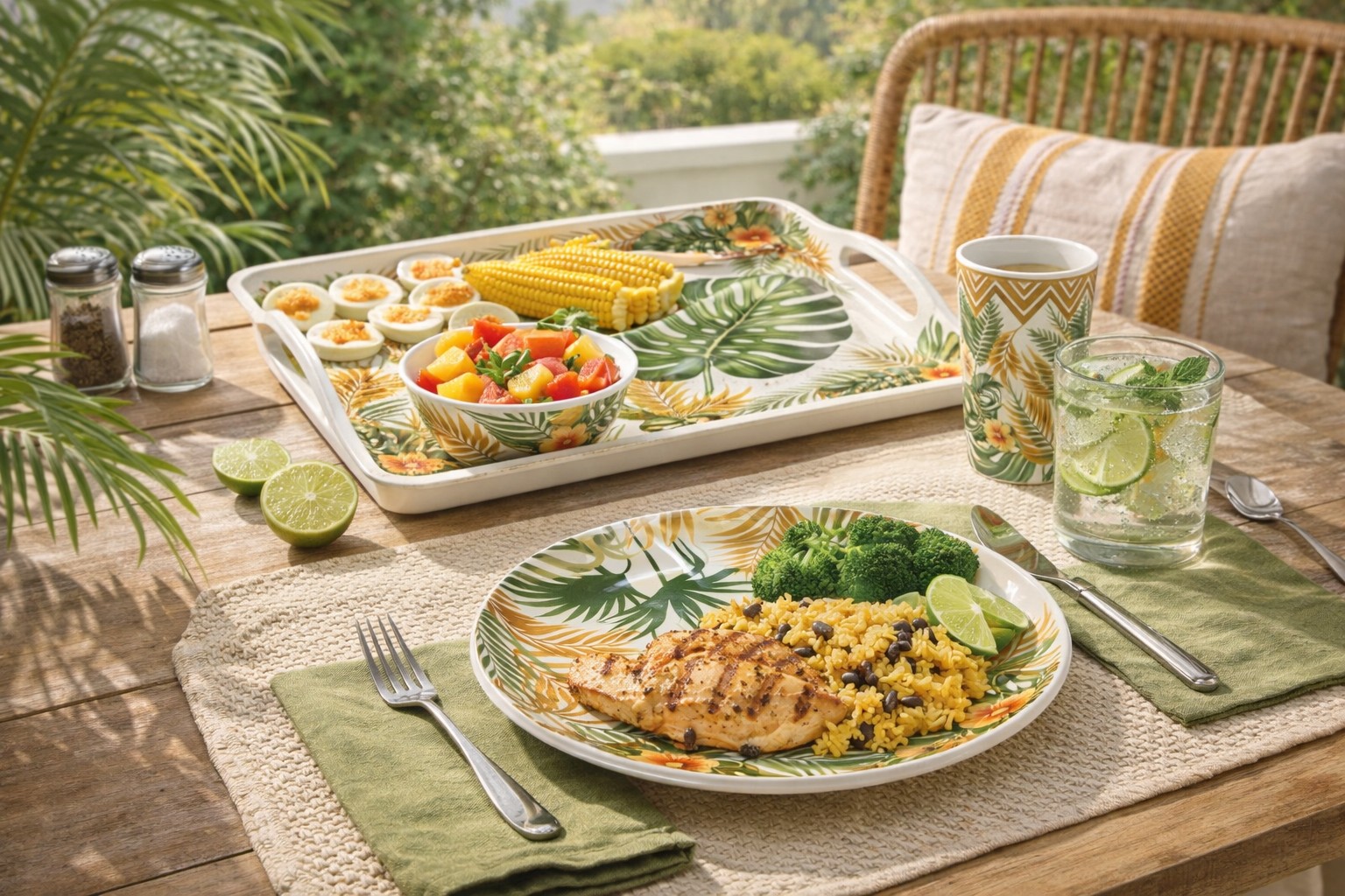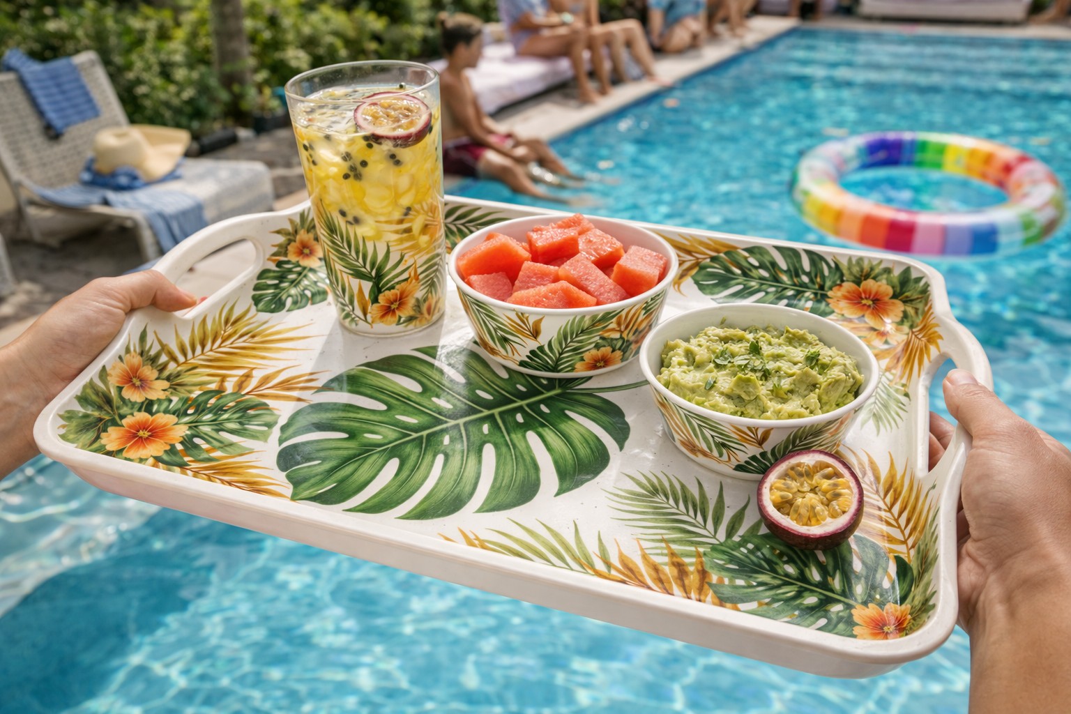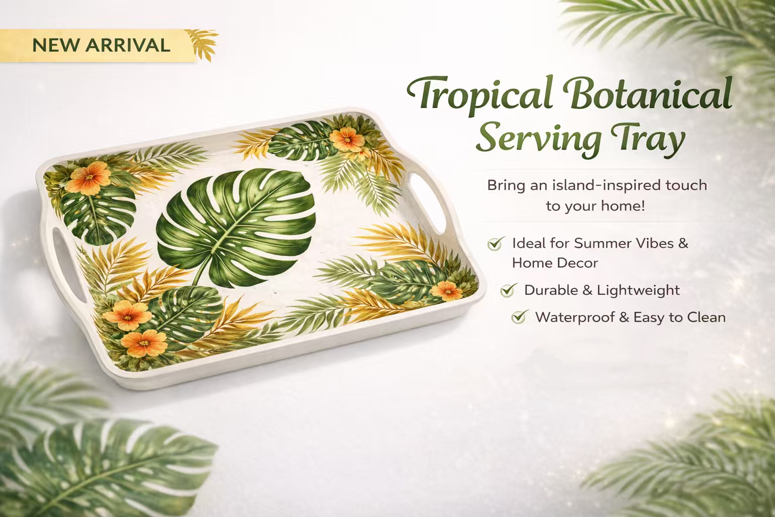 Tropical Design Concept Inspired by Brazilian tropical lifestyle, this melamine serving tray features vibrant leaf patterns perfect for outdoor and daily use.