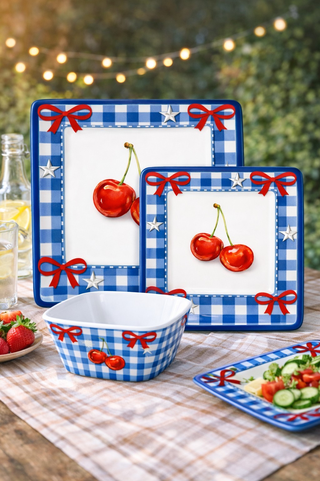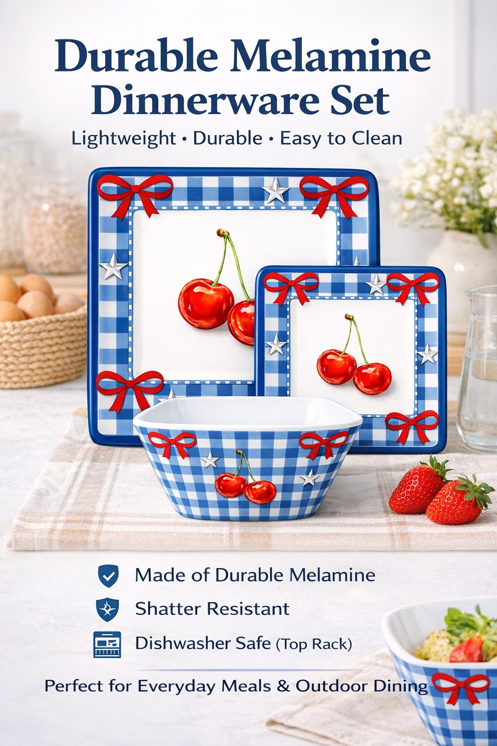 Cherry-pattern melamine dinnerware set