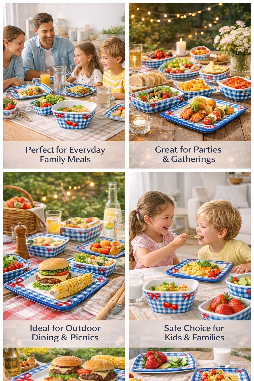 Includes plates and bowl for table settings