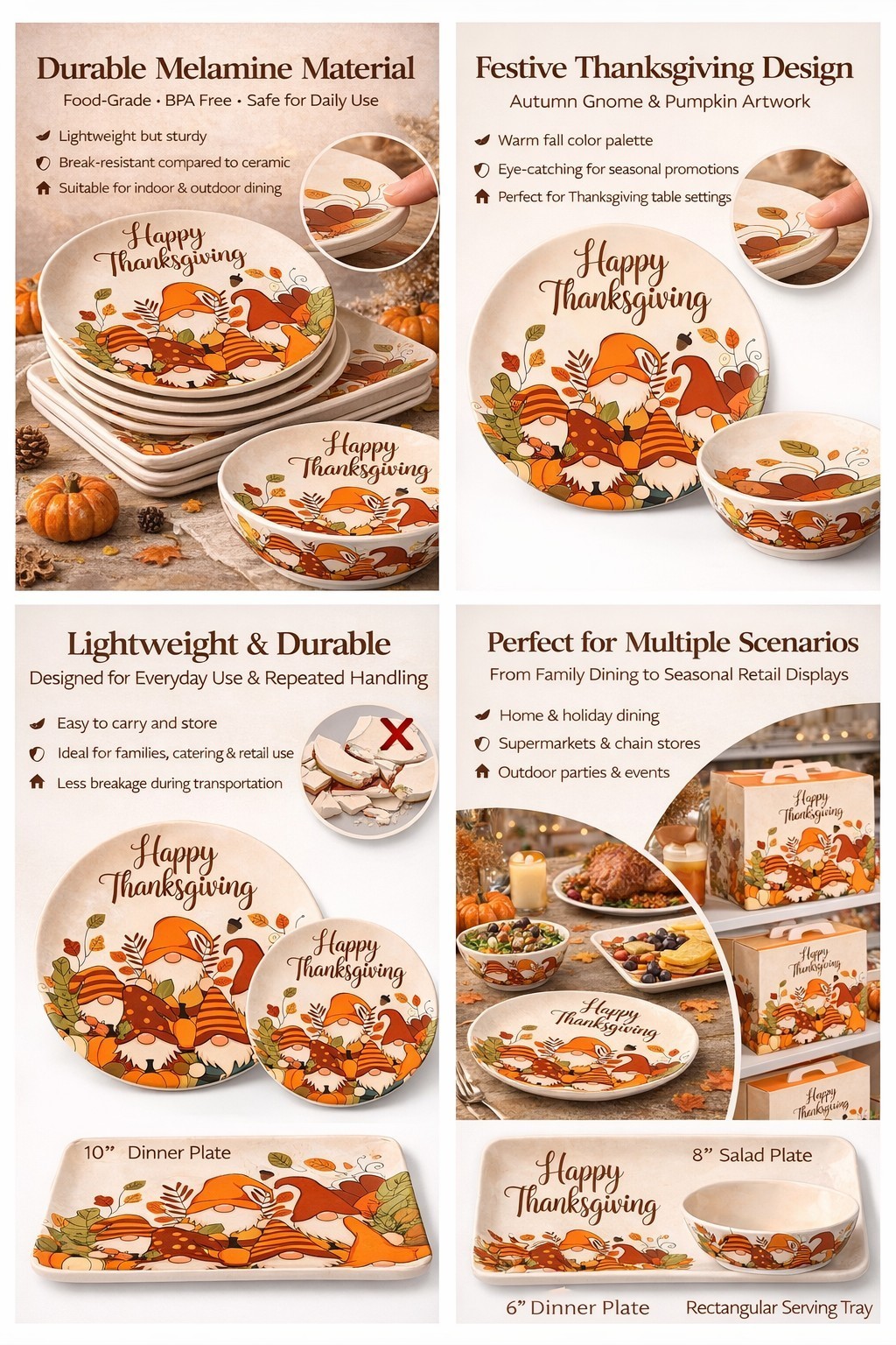 Wholesale Thanksgiving Melamine Plates, 2 Sizes