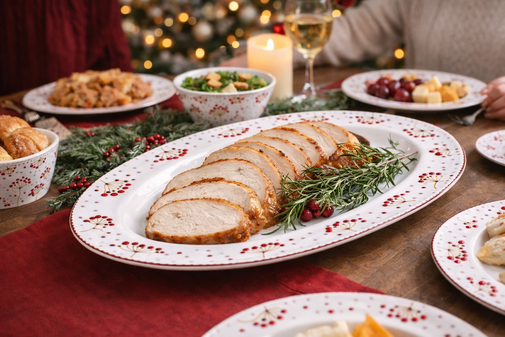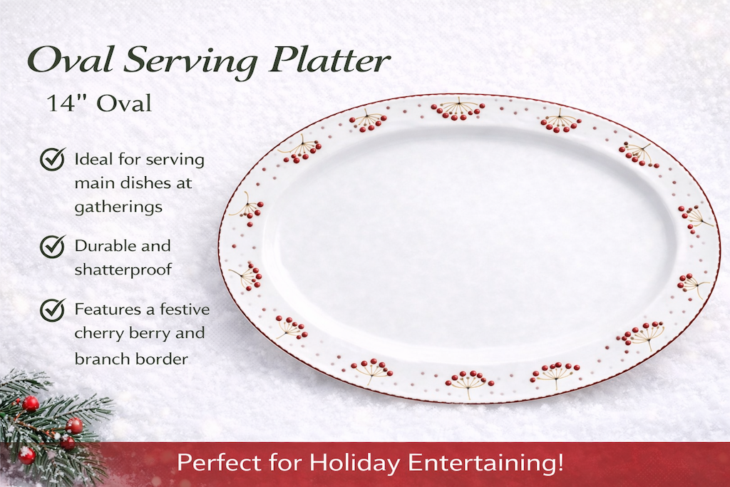 Durable Christmas melamine dinnerware oval serving platter.
